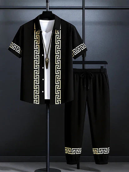 Black Border Men's Casual Half Sleeve Shirt and Full Pant Set - XPCRDF