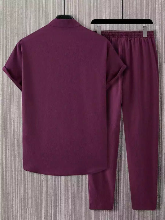 Plain Burgundy Mens Full Set Trouser and Shirt Half Sleeves