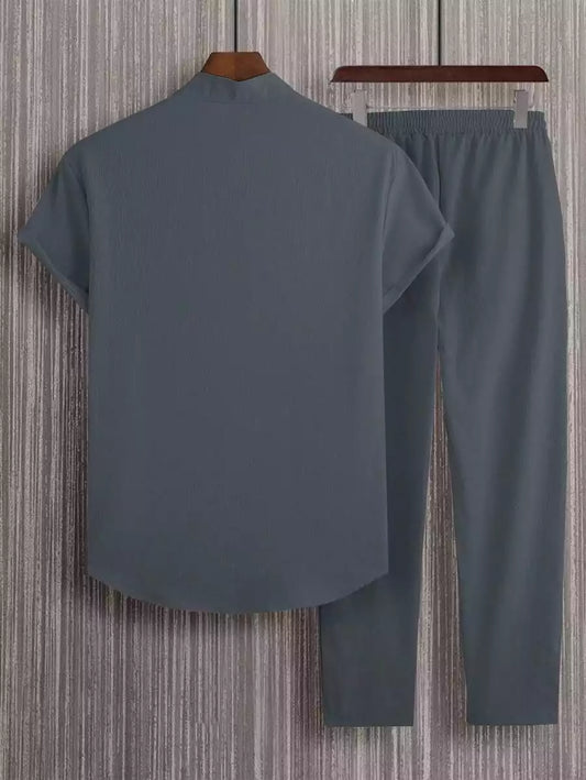 Plain Grey Mens Full Set Trouser and Shirt Half Sleeves