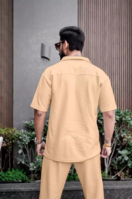Plain Apricot Mens Full Set Trouser and Shirt Half Sleeves
