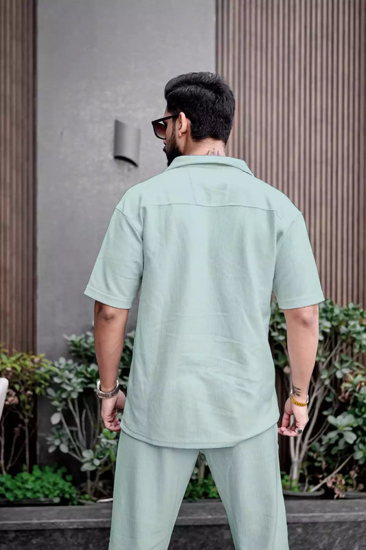 Green Color Mens Full Set Trouser and Shirt Half Sleeves