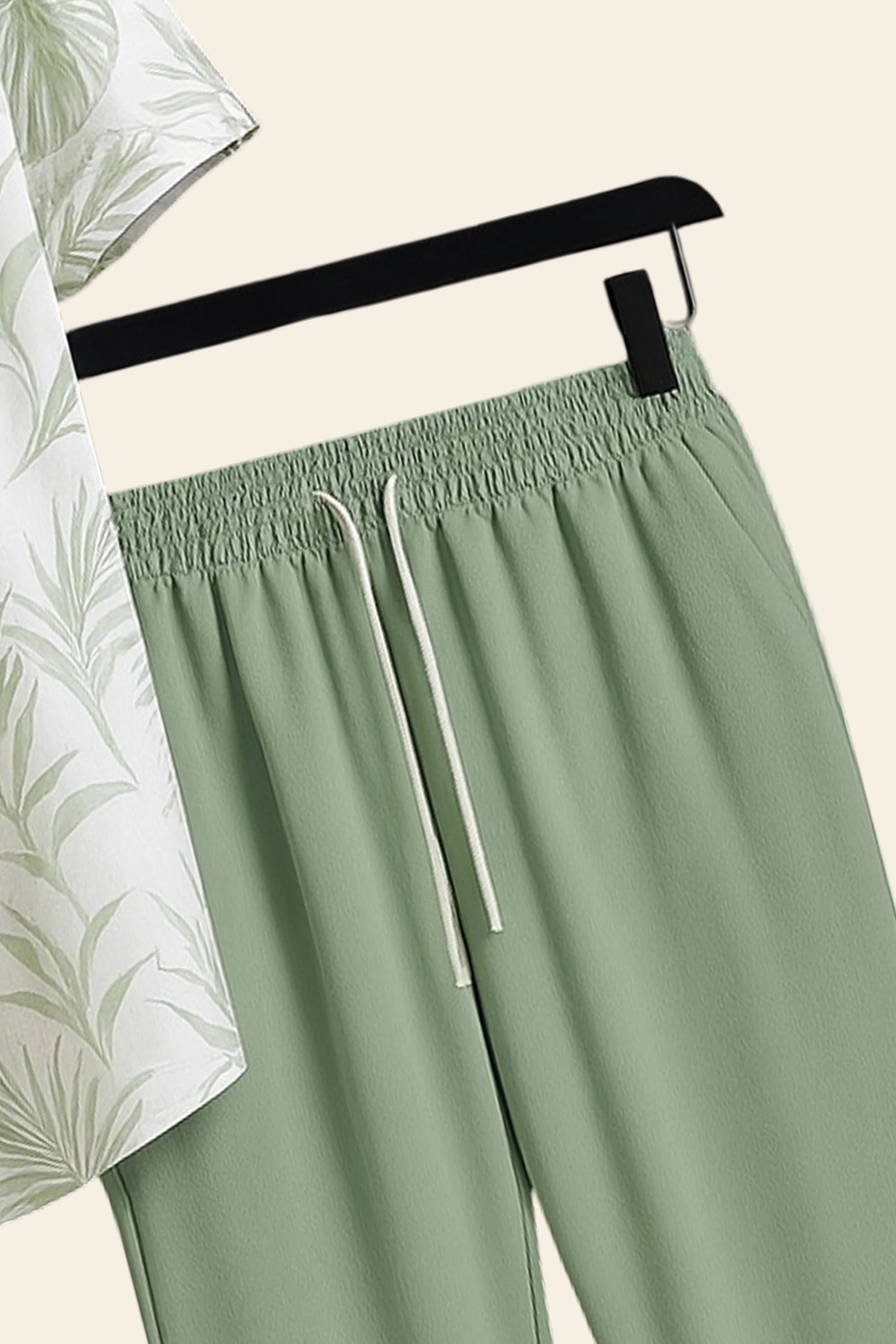 Leafy White Men's Casual Half Sleeve Shirt and Full Pant Set
